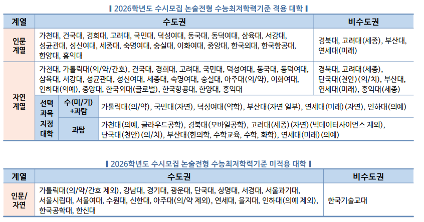 2026학년도 대입 수시모집 논술전형